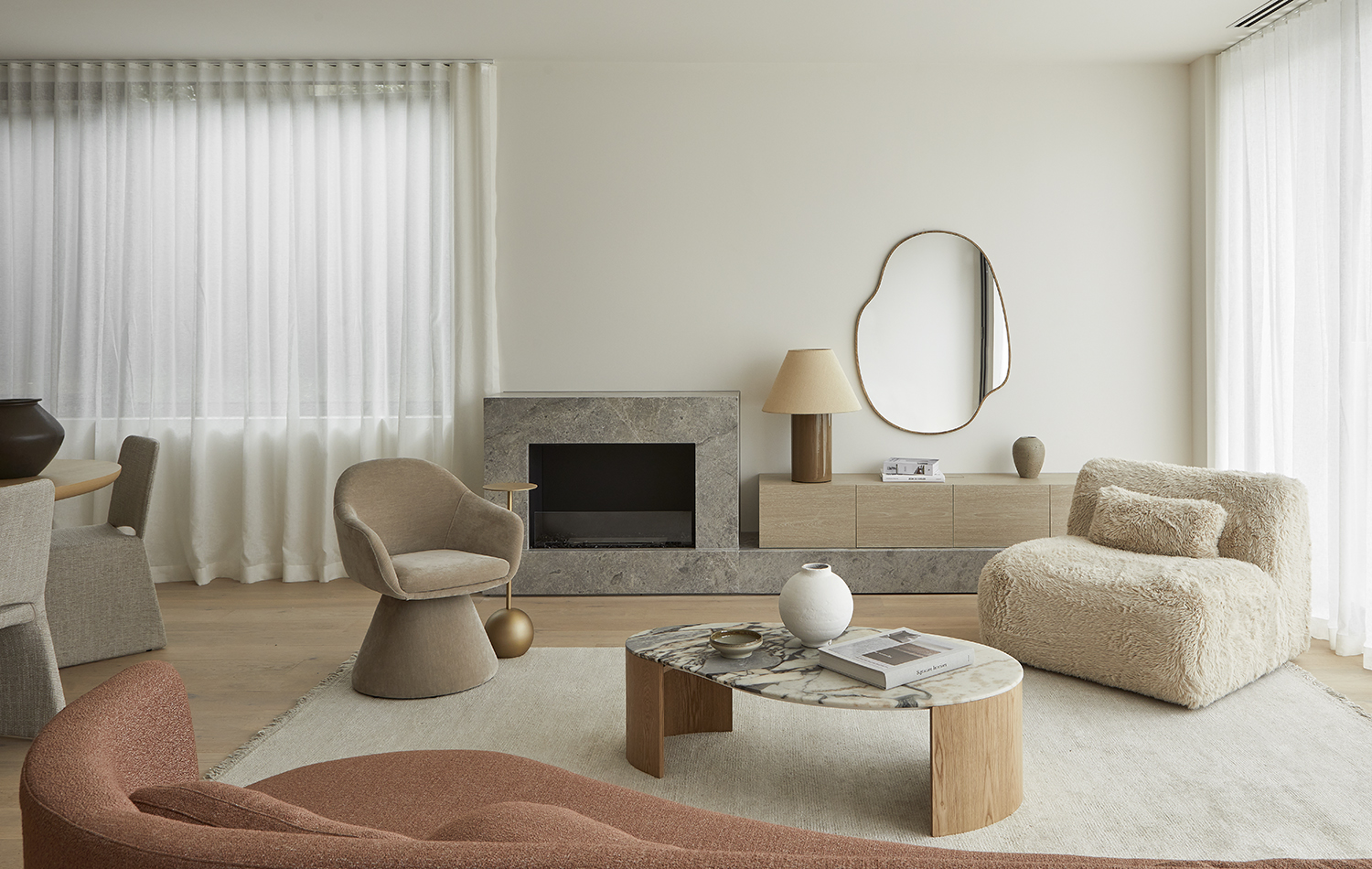 “Oceano was about creating living spaces where contrasting elements—strong architectural lines and soft, inviting interiors—work in harmony,” said Bec. The result is a cohesive and luxurious living experience that redefines modern bayside living.