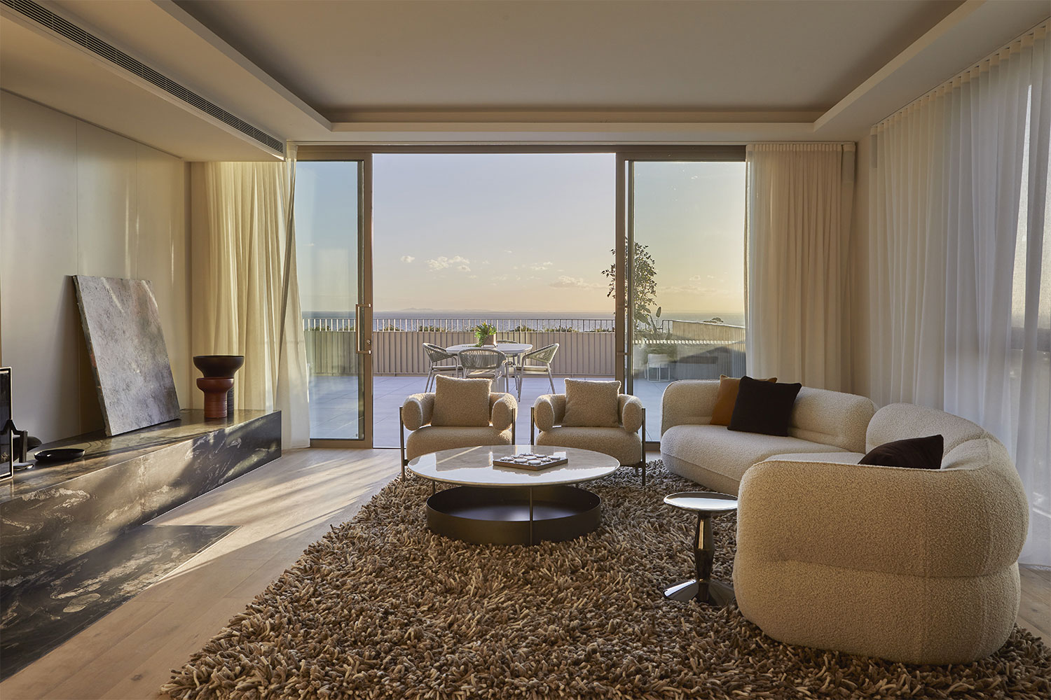 Designed by award-winning architects Woods Bagot, the building’s soft sandy façade and cascading greenery blend seamlessly into its coastal surroundings. Inside, a striking fusion of architecture and nature unfolds around a central lightwell, lined with vibrant plant life and a serene reflection pool. “We selected Woods Bagot for their expertise in tactile materials, timeless design, and proven ability to create shared spaces that enhance residents’ everyday living,” says Tim Lowe.