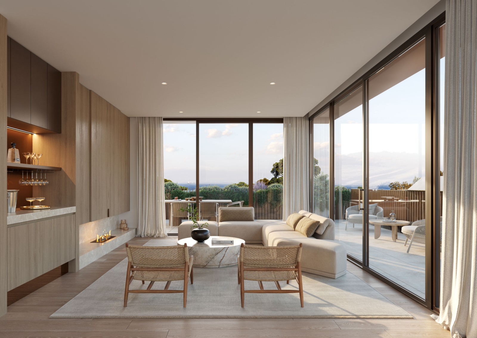 Internally, each residence has been carefully curated to reflect a lifestyle of effortless refinement. Natural textures, thoughtful joinery, and generous proportions work together to create spaces of warmth and character, where everyday rituals unfold with grace. From morning coffee in the sun-drenched living room to twilight dinners on the terrace, Marella invites residents to embrace moments both quiet and social.