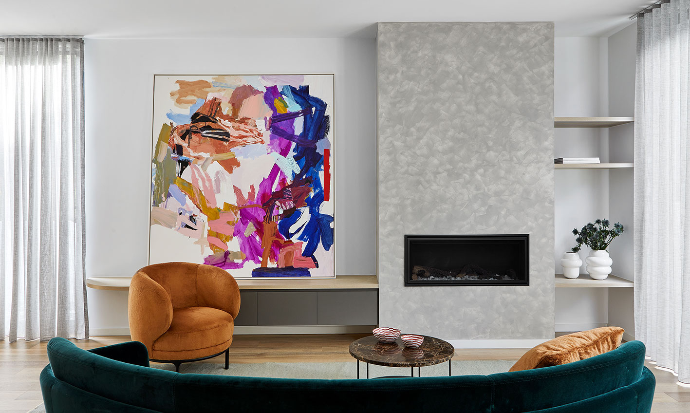 As an architectural statement, Lumiere’s exterior radiates in a class of its own. A view from the street shows the ground floor taking cues from the curved geometry of the HMVS Cerberus. The structure’s façade blends both rough and smooth textures, inspired by the nearby landscape. From split-faced stone to dark metal finishes, Lumiere presents a modern yet bold appearance, carefully crafted to bring the six identifiable residences to life. Intelligent design makes way for maximum privacy, while each layout creates a harmonious relationship with nature.