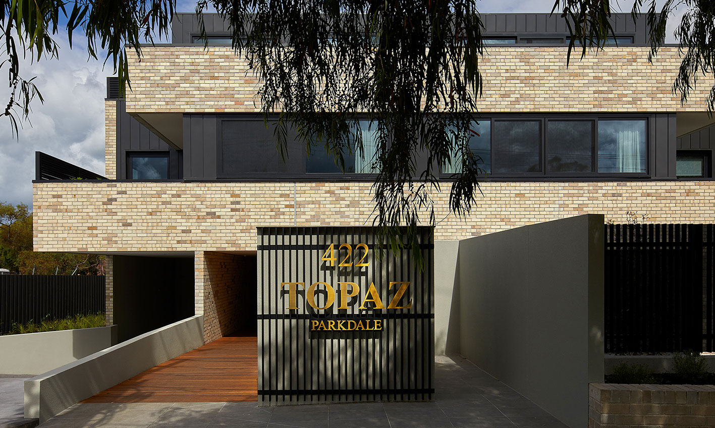Lowe Living and Chamberlain Architects have put their design flair to excellent use in crafting the luxurious Topaz residences, which were desired to create bright, airy spaces that have a focus on liveability and connection to generous outdoor areas. The vision for Topaz was brought to life with intricate tri-level construction. Aesthetically striking, the façade reveals a timeless, low maintenance textural palette of contrasting brickwork and toned renders.
